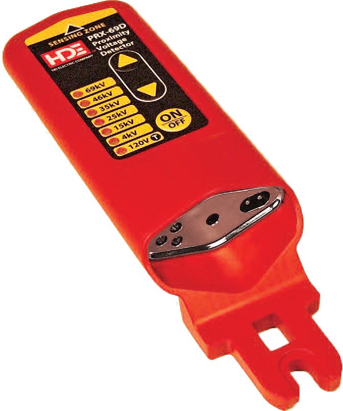 The PRX Distribution Proximity Voltage Detector is a non-contact detector with seven standard voltage ranges from 120V to 69kV. When voltage is detected, the PRX gives an audible and visual indication with a typical detection distance of 10 inches. The PRX has the ability to detect voltage on most elbow test points at the 120V setting.