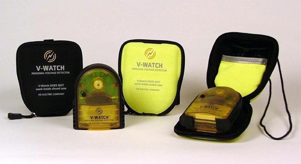 V-Watch Pro Personal Voltage Detector Kit Low battery indicator Typical V-Watch initial warning distance is about 7 feet (2.13 m) from a 4kVAC conductor. Warning distance increases with higher voltages. Built-in self test Lightweight Field replaceable 9V battery Rugged protective housing Audible and visual alarms increase in frequency the closer the user gets to energized equipment Alerts user to proximity of high voltage Provides another level of safety for line crews, storm restoration workers and first responders.