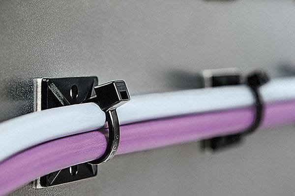 MB4A adhesive mounts are for use with HellermannTyton T18 – T50 Series cable ties to provide stability when securing bundles. The high-bond acrylic adhesive-backed mounts can be used to secure a bundle and have two predrilled holes to extend mounting options.