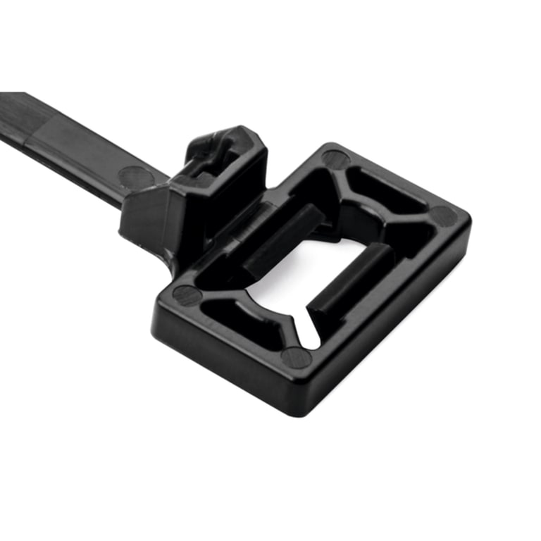 The HellermannTyton 157-00226 low-profile stud mount allows for several ties to be installed on top of one another. The features can be used to accommodate applications requiring the fastening of a single bundle or multiple bundles on the same stud.