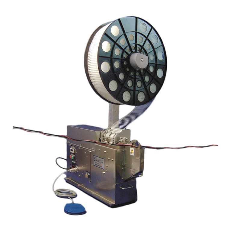 HellermannTyton’s Quick Tool is an automatic bench mount system suited for high volume cable tie applications. This air powered tool accommodates a reel of 5000 ties and, like HellermannTyton’s other automamted systems, can be integrated into further automation as well as fully incorporated into conveyor or assembly line applications.