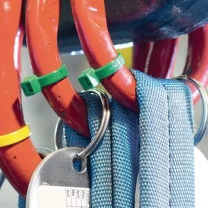 Heavy duty T-Series cable ties feature inside serrations to provide a positive hold on wire and cable bundles. Durable head design guarantees high tensile strength and a low insertion force. The bent tail allows quick and simple installations by hand. For high-volume applications, tensioning tools are available to ensure consistent and safe installation. Specially manufactured to comply with Military Specification MS3367-3-2, Class 1 and SAE-AS33671.