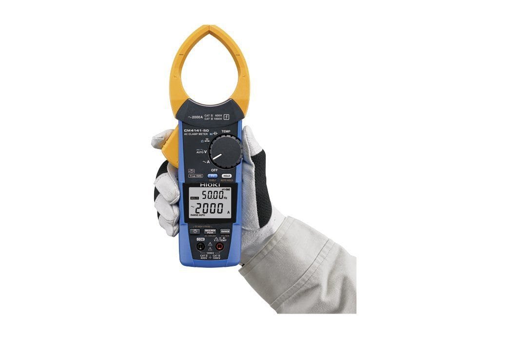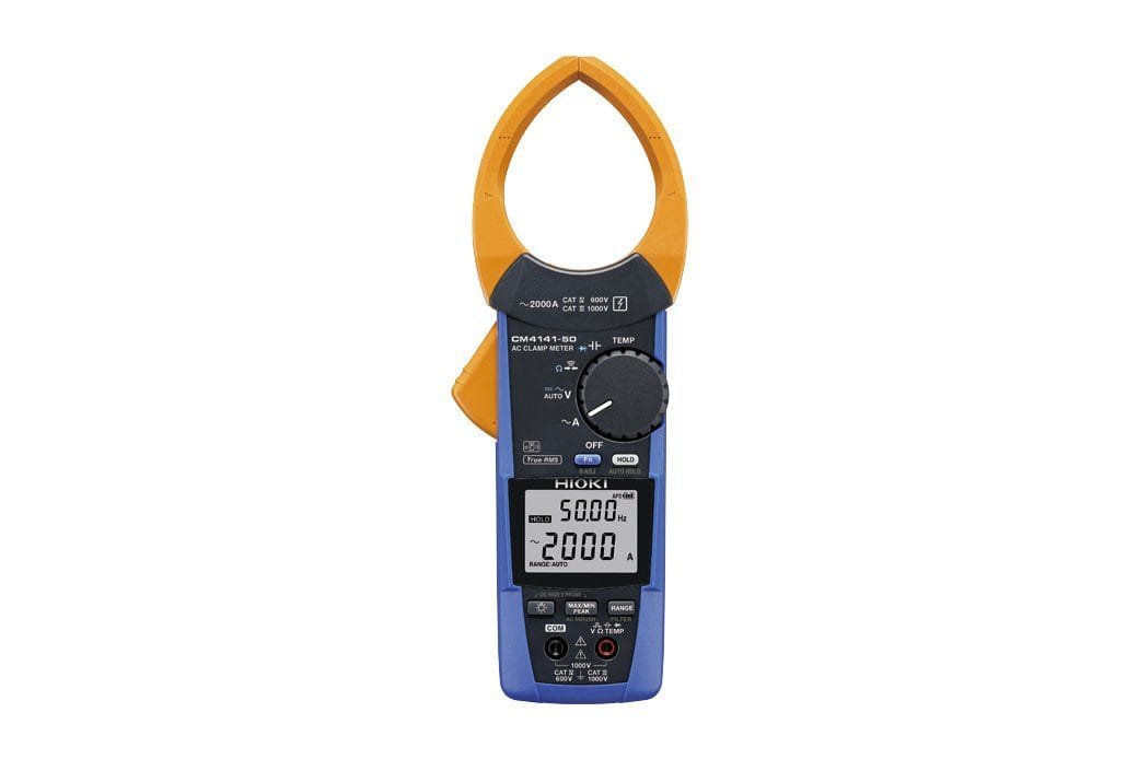 Hioki clamp-on meters are best-in-class measuring devices incorporating Hioki’s expertise in current sensing technology. The CM4141-50 is a 2000 A AC True RMS clamp meter that features a uniquely designed slim jaw that lets you easily get into the narrow gaps between cables in crowded electrical distribution boxes without fear of damaging the cables or the clamp meter. The high current measurement capability makes it especially useful for industrial applications.