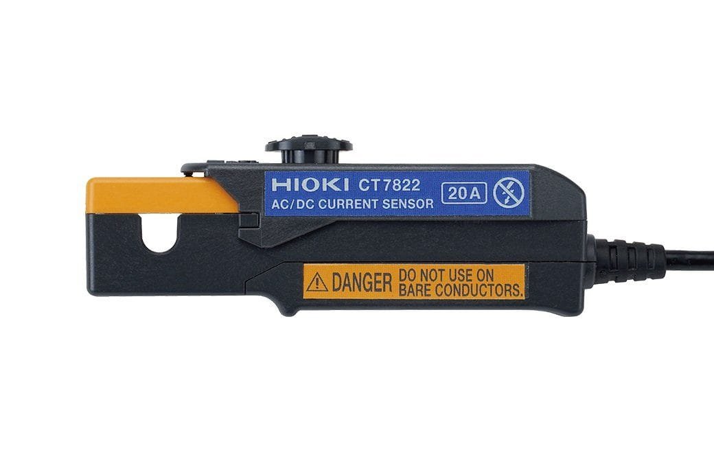 The CT7822 is a clamp current sensor that can perform highly precise measurements of AC and DC currents of up to 20 A. It has excellent frequency (amplitude and phase) and temperature (sensitivity and offset) characteristics and can be used for current measurement and high-precision power measurement.