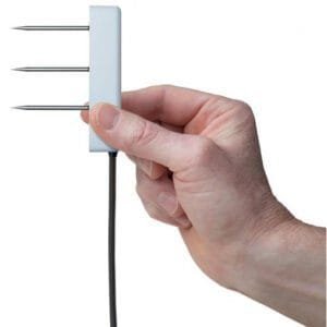 - Soil moisture (volumetric water content), soil temperature, and electrical conductivity measurements with one device