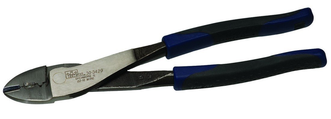 Ideal Smart-Grip Multi-Crimp Tool in black color is made of drop-forged, high carbon steel and durable plastic. It is a high quality crimping tool designed for crimping bare or insulated terminals and connectors of range 10 to 22 AWG. It has knife-to-anvil blades that never needs resharpening. It has excellent leverage for easy crimping and cutting with smart-grip handles that are resistant to perspiration, water, oil and chemicals. Tool provides a sure grip in wet conditions. It has overall length of 9-3/4 inches and comes with plastic-dipped cushioned handles for comfort use.