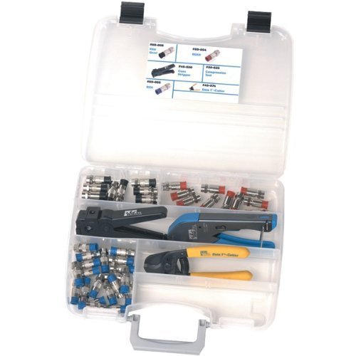 Basic Compression Kit includes Economy Compression Tool, Data T-Cutter, Coax Stripper, and RG-59 Compression Connectors. This economy compression kit also includes RG-6 Quad Compression Connectors and RG-6 Compression Connectors.