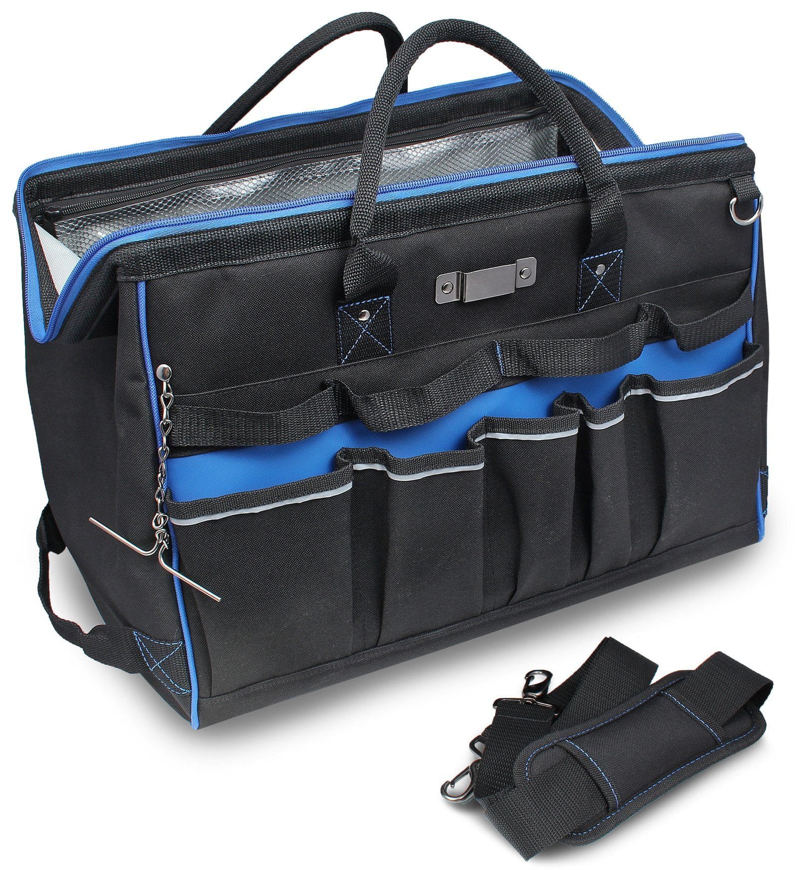 - Top opens completely for easy access to large tools