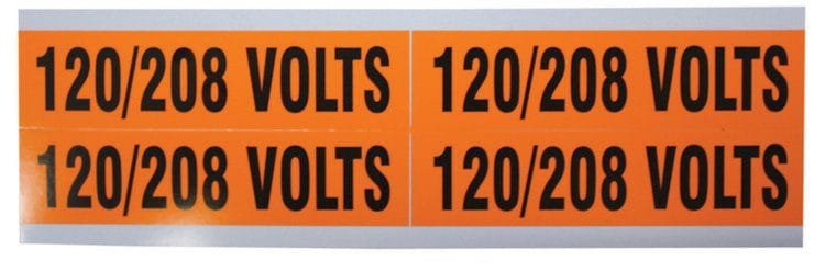 Voltage and Conduit Marker Cards, Medium 1-1/8 x 4-1/2 inches, Legend 120/208V