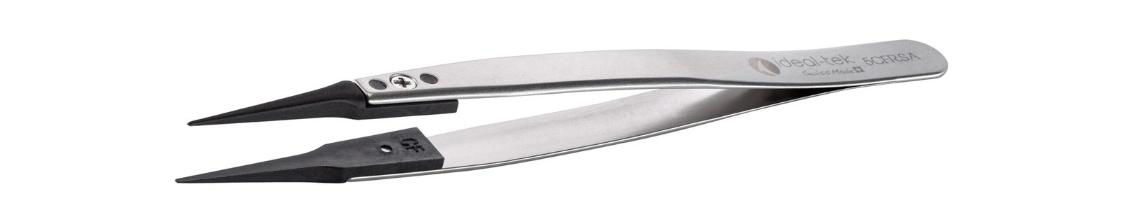 Ideal-Tek 5CFR.SA.1 – Plastic Replaceable Tip Tweezers, Carbon Fiber, Sharp Tip, 5.12″