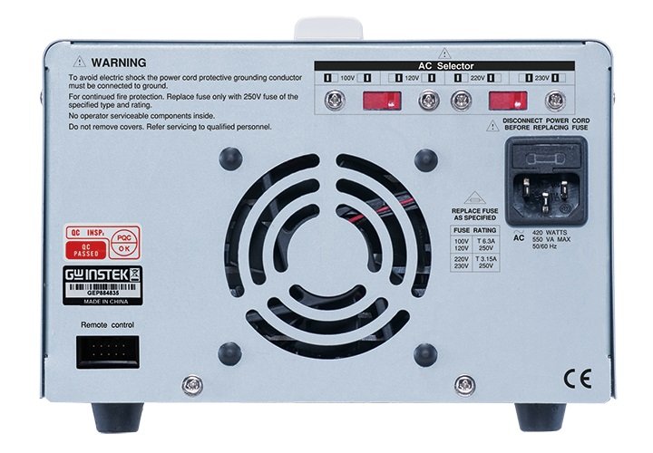 The GPE-3060/6030 is a liner DC power supply series designed as the next generation of the GPC-3060D/6030D power supplies They deliver 385 watts of output power and feature three independent isolated output channels. The GPE-3060 offers two channels with outputs of 0 to 30V and 0 to 6A, while the GPE-6030 offers two channels with outputs of 0 to 60V and 0 to 3A. Both models feature a third channel with maximum outputs of 5.0V at 5A