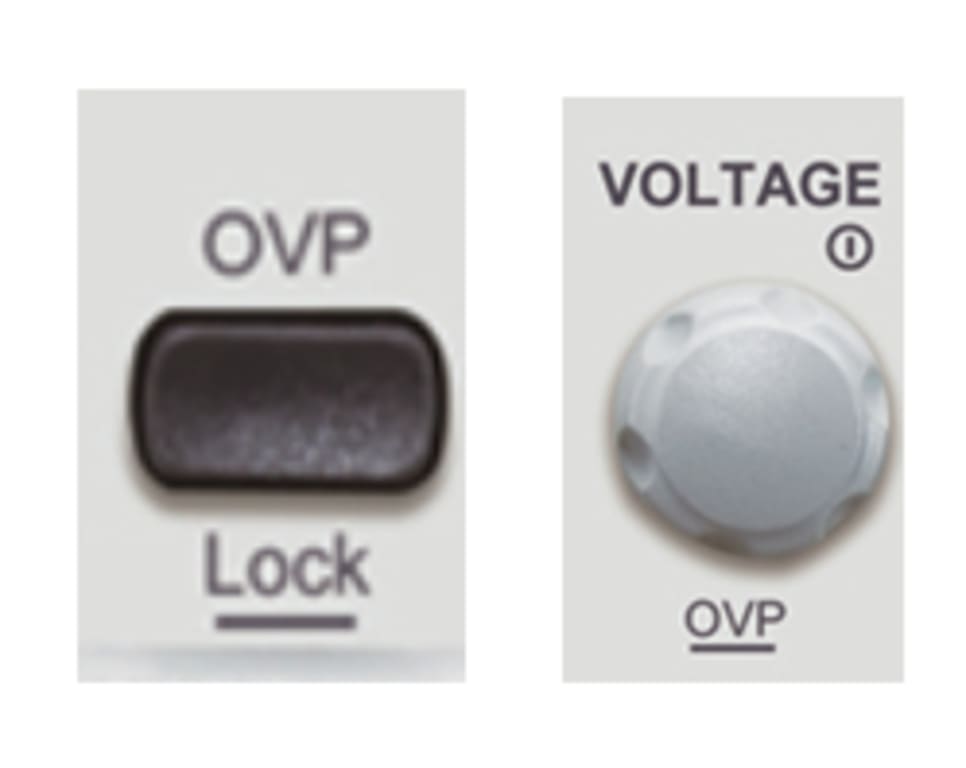 The GPE-3060/6030 linear DC power supplies have a built-in digital control panel. Over-voltage protection (OVP) can be enabled and configured via an efficient and user-friendly panel button and knob. The voltage knob acts as an OVP switch during OVP configuration. The panel lock function prevents voltage and current parameters from tampering by an outside party.