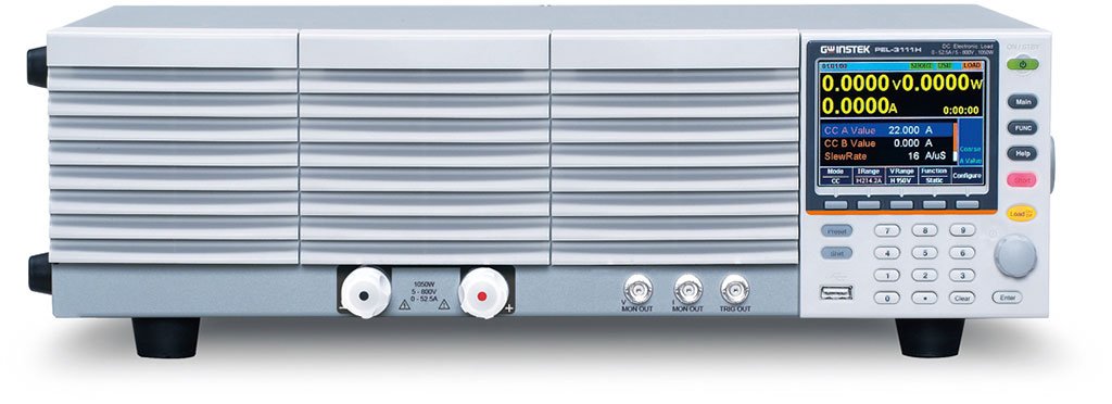 The PEL-3000H programmable DC Electronic load, which not only inherited functions and features from the PEL-3000 series but providing three current ranges for all PEL-3000H series and adding voltage monitor BNC terminals on the front panel. The PEL-3000H series, a single-channel, programmable D.C. electronic load with 800V and 0.84A/μs current Slew Rate, is ideal for the test of the high voltage devices such as the EV & HEV in-vehicle chargers, DC/DC converters or high-voltage batteries.