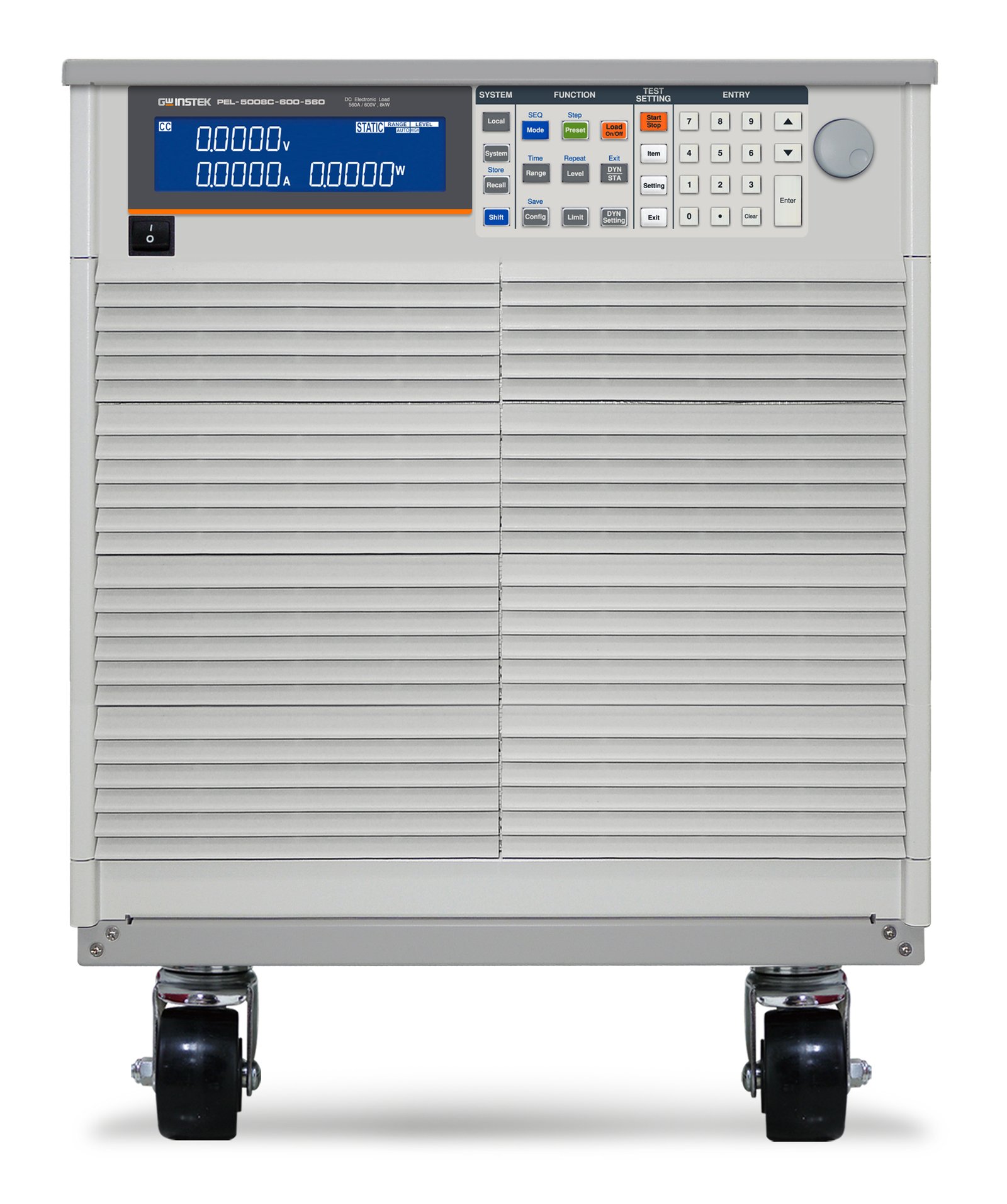 GW Instek PEL-5000C series single-channel electronic load provides 150V/ 600V/ 1200V models with a power range of 6kW~24kW. PEL-5000C has a total of 24 models featuring different combinations of power, voltage, and current. It can test and verify the specifications of batteries, electric vehicle chargers/charging stations, electric vehicle batteries, and solar panels. PEL-5000C supports parallel connections for the same voltage specification and different power models. PEL-5000C can support up to 8 units connected in parallel to provide a maximum power of 192kW.