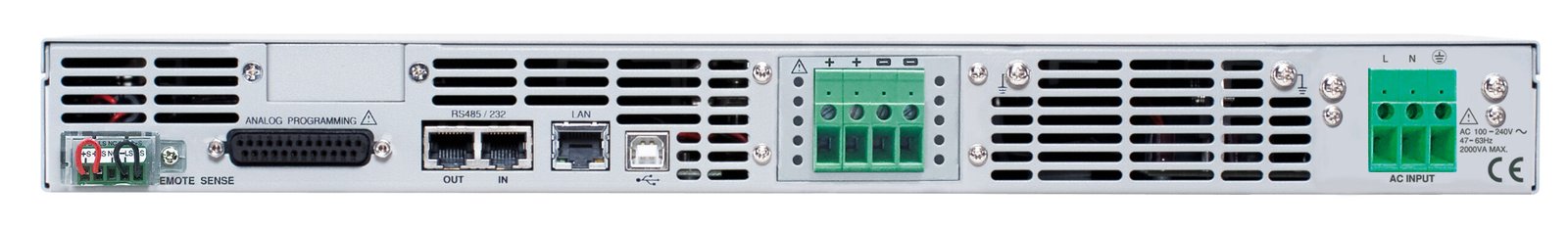 Comparing with other 1U power supplies available in the market, PSU-series supports a most complete array of interfaces, including USB, LAN, RS-232, RS-485, analog control interface, GPIB (option), isolated analog interface (voltage control), and isolated analog interface (current control). Via the multi-drop mode, PSU-series will not need any switch/hub and GPIB cable for remote control and slave unit augmentation when using LAN, USB or GPIB. This feature can help users save costs on equipment.
