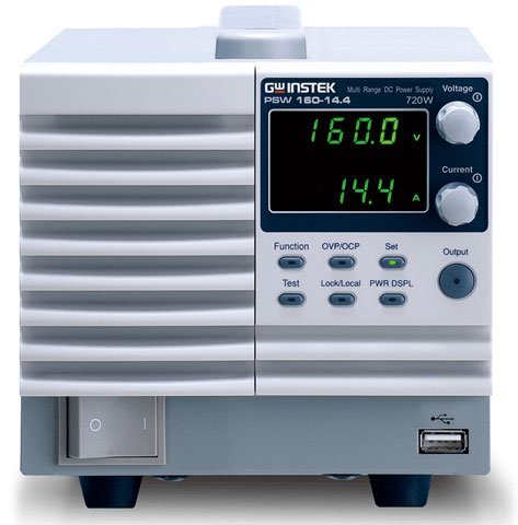 The PSW-Series is a single-output multi-range programmable switching DC Power Supply covering a power range up to 1080W. This series of products include fifteen models with the combination of 30V, 80V, 160V, 250V, and 800V rated voltages and 360W, 720W and 1080W maximum output powers. The multi-range feature allows the flexible and efficient configuration of voltage and current within the rated power range. As the PSW-Series can be connected in series for maximum 2 units or in parallel for maximum 3 units, the capability of connecting multiple PSW units for higher voltage or higher current output provides a broad coverage of applications. With the flexibility of multi-range power utilization and series/parallel connection, the PSW Series significantly reduces the user’s investment for various power supply products to accommodate the projects with different power requirements.