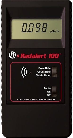 The Medcom Radalert 100X is a general purpose geiger counter that measures alpha, beta, gamma, and X-radiation. Features of the Radalert® 100X, include a three-second update and a Utility Menu that allows you to change the default settings for several operating parameters. Its digital liquid crystal display (LCD) shows the current radiation level in your choice of SI units (microsieverts per hour) from .000 to 1,100 and counts per minute (CPM) from 0 to 350,000 or counts per second (CPS) from 0 to 3,500. For users of conventional units mR/hr (milliroentgens per hour) from .000 to 110 and CPM are optional in the Utility Menu. This instrument also offers an accumulated total and timer function, up to 9,999,000 counts and 40 hours.