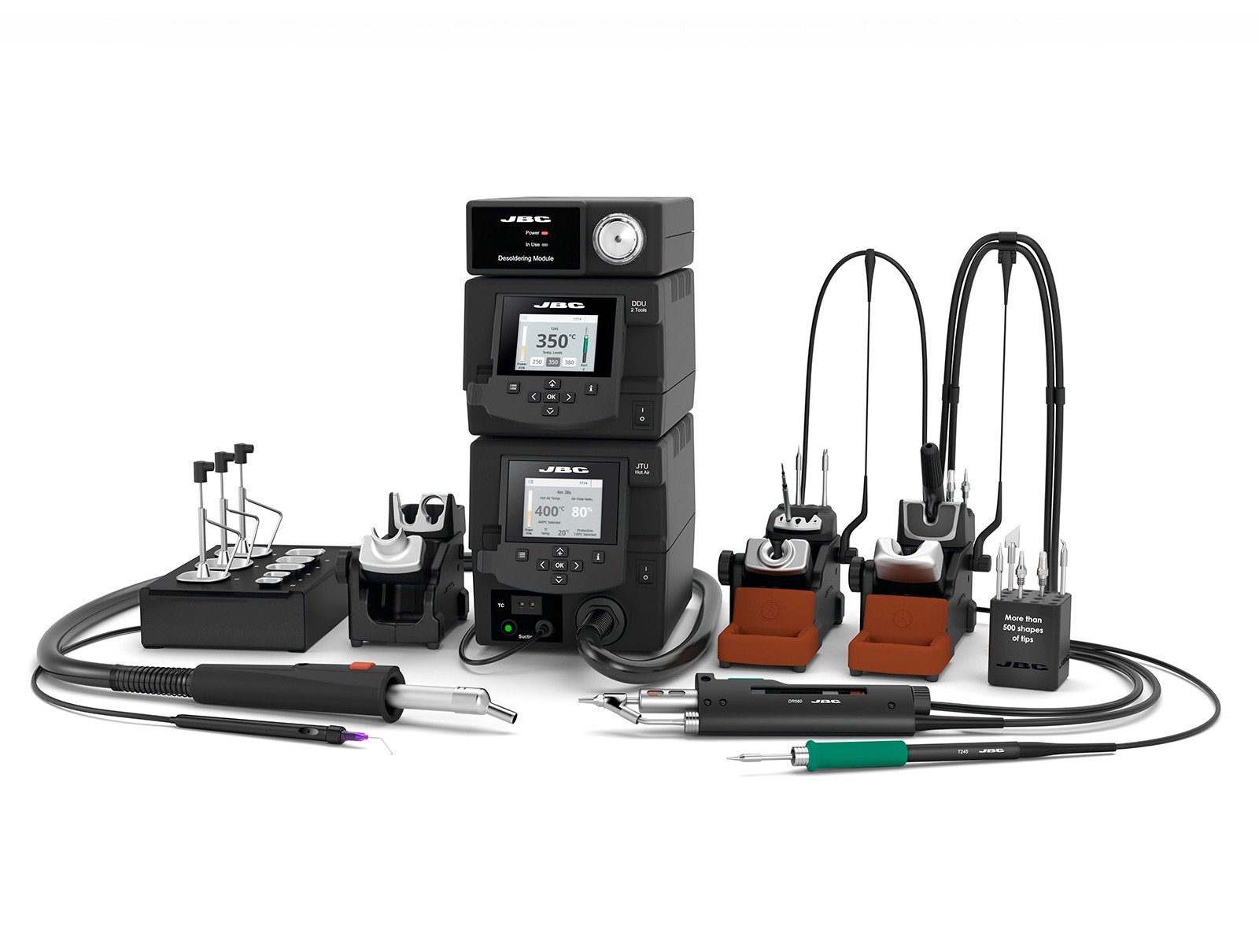 This system also includes a JT hot air station, designed for repairing all types of SMDs quickly and safely, including the biggest QFPs and PLCCs.