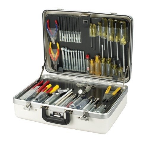 Jensen tools have taken every precaution to guard against particulate contamination and still provide the most functional cleanroom kit possible. Our PVC pallets are fully submersible in cleaning tanks or can be easily cleaned by hand. Cases are easily cleaned as well. The JTK-1003 contains both inch and metric tools in a larger case. Features a side-hinged pallet plus space in the bottom of the case for additional tools and test equipment.