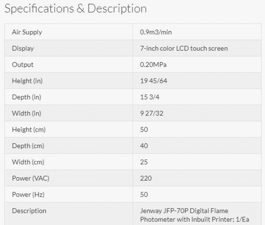 The Jenway JFP-70P digital flame photometer features a 7in color touch screen and 5-channel simultaneous operation. Data can be transfer to computer through USB or printer. The system comes complete with air compressor, air filtration valve, sprayer, and atomizing chamber.