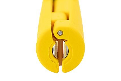 The Jokari 30700 is a stripping tool for fiber optic cables (e.g. DAC-Direct Access cable). The blades are titanium-nitride coated and it has no adjustment to the cutting depth necessary.