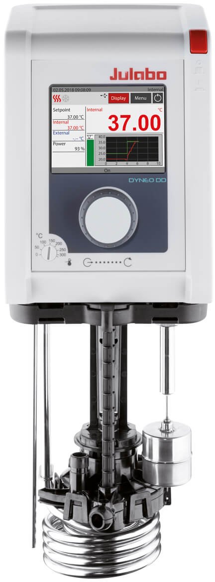 DYNEO DD heating circulators for internal and external applications are equipped with closed bath tanks. The tanks are well insulated and include a coil for counter-cooling. An integrated drain tap makes emptying the tank safe and clean. The multilingual 3.5-inch color display and unique rotary knob provide for straightforward and intuitive operation.