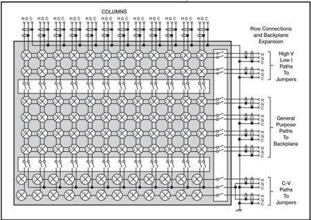 For applications requiring connections to a large number of devices or test points, the 7072-HV matrix can be expanded with additional cards. The high voltage and C-V rows can be extended to other cards with coaxial jumpers. The other four high-quality signal paths connect directly to the 707A or 708A backplane for expansion.