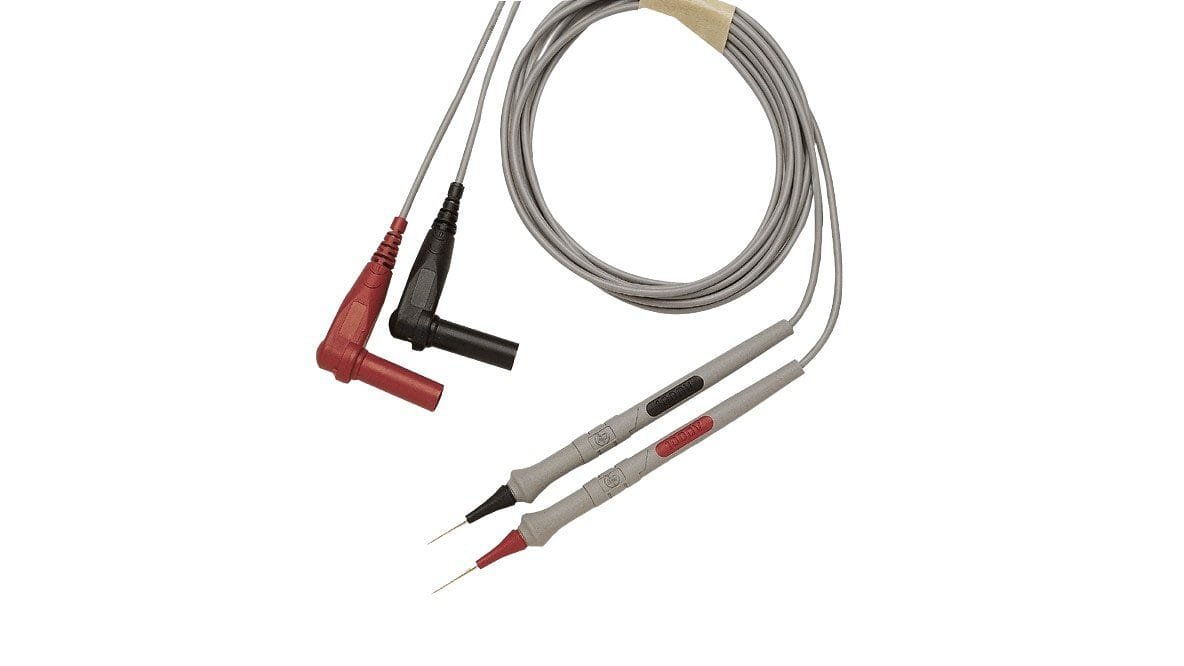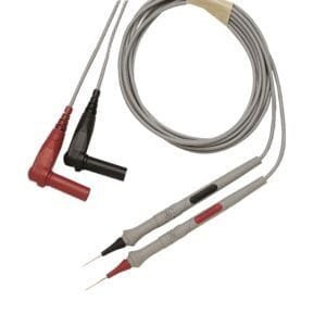 The Keysight 34133A precision electronic test leads are designed specifically for working with small components and in dense circuit boards. The test leads are small, light, and feature Keysight’s patented browser concept, using a crown point pogo pin. The spring-loaded tip helps absorb those small movements and the crown point digs into solder. Each kit includes two test leads (one red and one black).