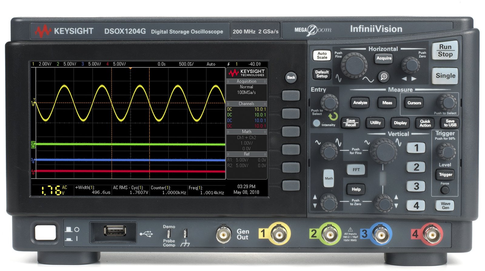 The InfiniiVision 1000 X-Series oscilloscopes are entry-level oscilloscopes with professional-level capabilities and connected software for remote control and data logging. It features 6-in-1 instrument integration and is part of the Keysight Smart Bench Essentials Series of four unique instruments that harness one powerful graphical interface. Have confidence in your results knowing the 1000 X-Series uses the same Keysight-custom technology used in other InfiniiVision Series oscilloscopes. Finally, an entry-level oscilloscope you can trust to give you professional measurements.