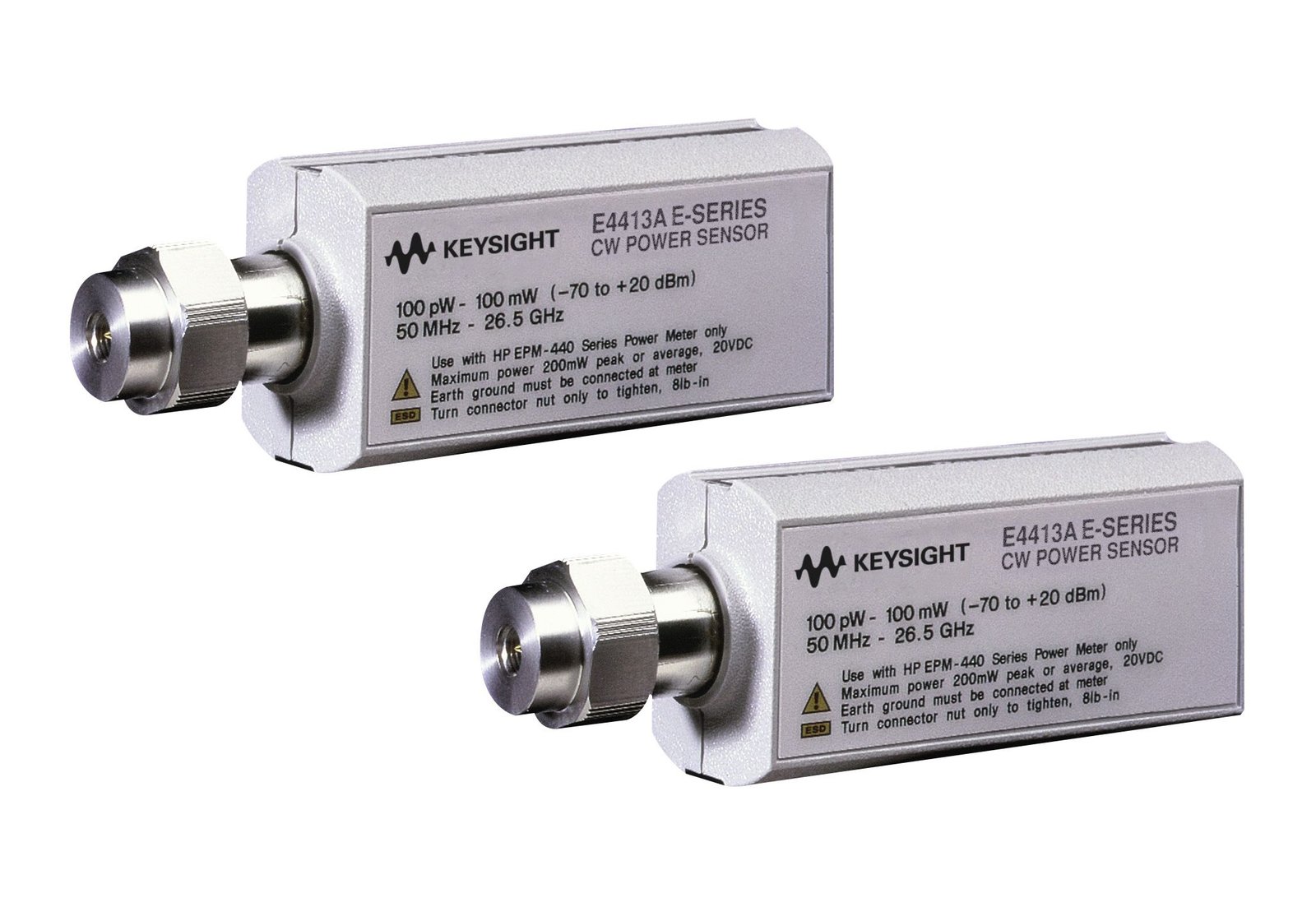 The E4413A is a diode power sensor intended for measurement of CW microwave power levels in a wide dynamic range from -70 dBm to +20 dBm (100 pW to 100 mW). The E4413A measures at frequencies from 50 MHz to 26.5 GHz.