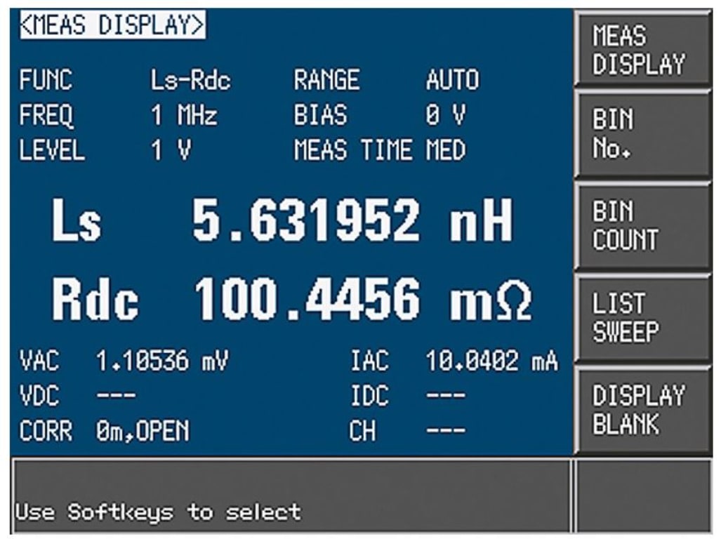 For inductor measurements, Ls or Lp and Rdc parameters can be measured at the same time.