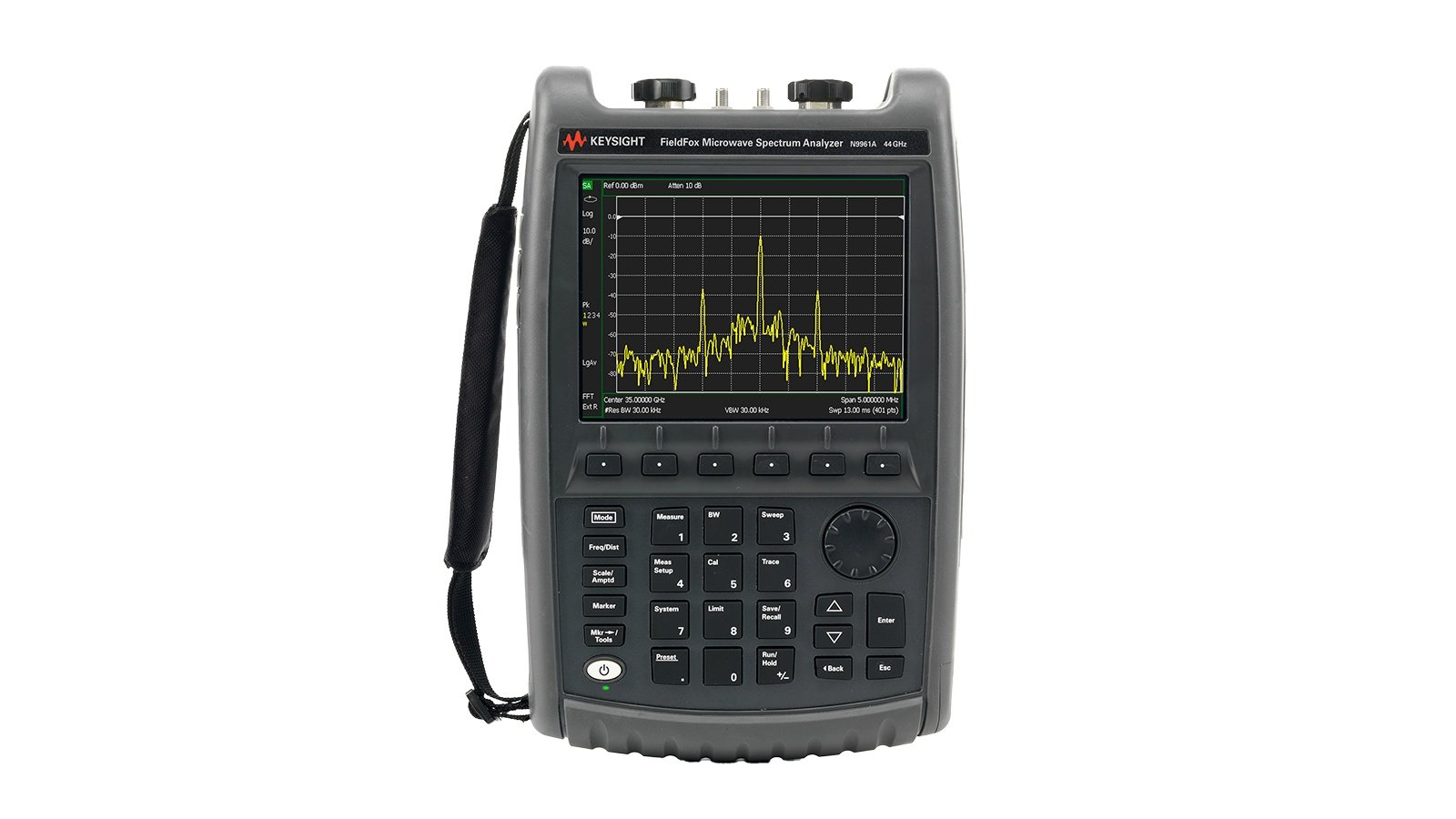 The Keysight N9961A is a Field Fox microwave spectrum analyzer with a frequency range of 9 kHz to 44 GHz. The standard model includes: