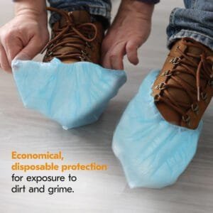 Personal Protective Equipment (PPE) enables, rather than inhibits, maximum productivity and safety for you and your employees. Light Duty Shoe Covers are a terrific choice when you need to provide economical, disposable protection for workers who are exposed to dirt and grime in the workplace. They are worn for entry-level protection from hazardous dust and feature a skid-resistant bottom. The fabric comprises five layers of stacked barrier protection for a lightweight, breathable protective shoe cover. These blue disposable shoe covers are one size fits all (universal size) and have elastic all the way around. They are popular for food processing, general maintenance, manufacturing, and cleaning rooms. Making the right Personal Protection choice is difficult.