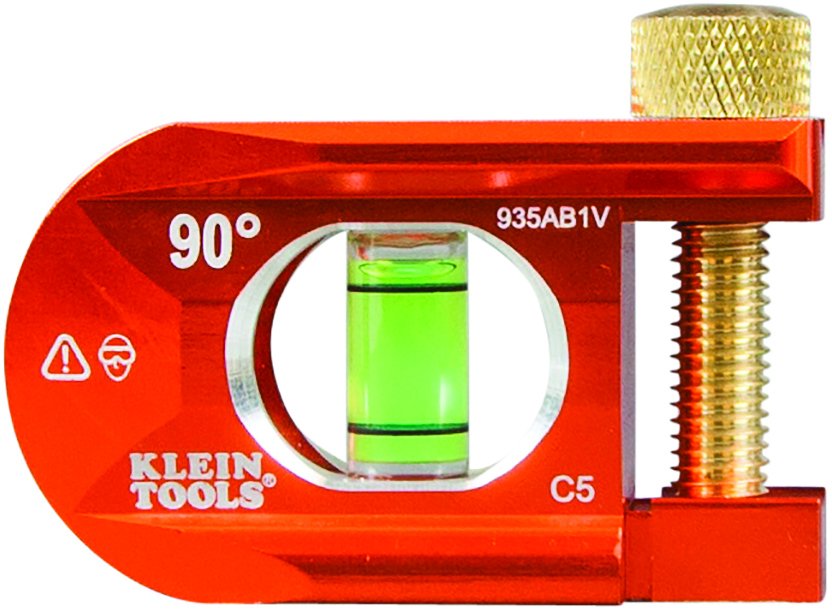 Klein’s Accu-Bend 1-Vial Level helps ensure precise 90-degree bends and eliminates dog legs. The thumb screw attaches the level to the conduit to help eliminate dog legs when bending. The large high-visibility vial is easy-to-read while the high-visibility orange is easy to spot in a sea of conduits. Built-in V-Groove easily fits the contour of conduit and pipe.