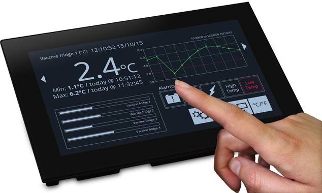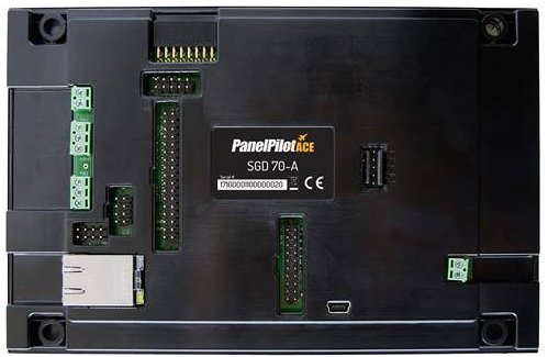 SGD 70-A is a 7″ capacitive touch display designed for use with PanelPilotACE Design Studio, a free drag-and-drop style software package for rapid development of advanced user interfaces and panel meters. This off the shelf display features a wealth of hardware interfaces, including four 16-bit bipolar analogue inputs (to a maximum of ±40V d.c.), eight digital input/output pins, two alarm outputs, four 8-bit PWM outputs, PID Control, Ethernet FTP for logged data, multi-channel data logging and trend graphs, serial RS232 and RS485 and an additional add on board to measure temperature.