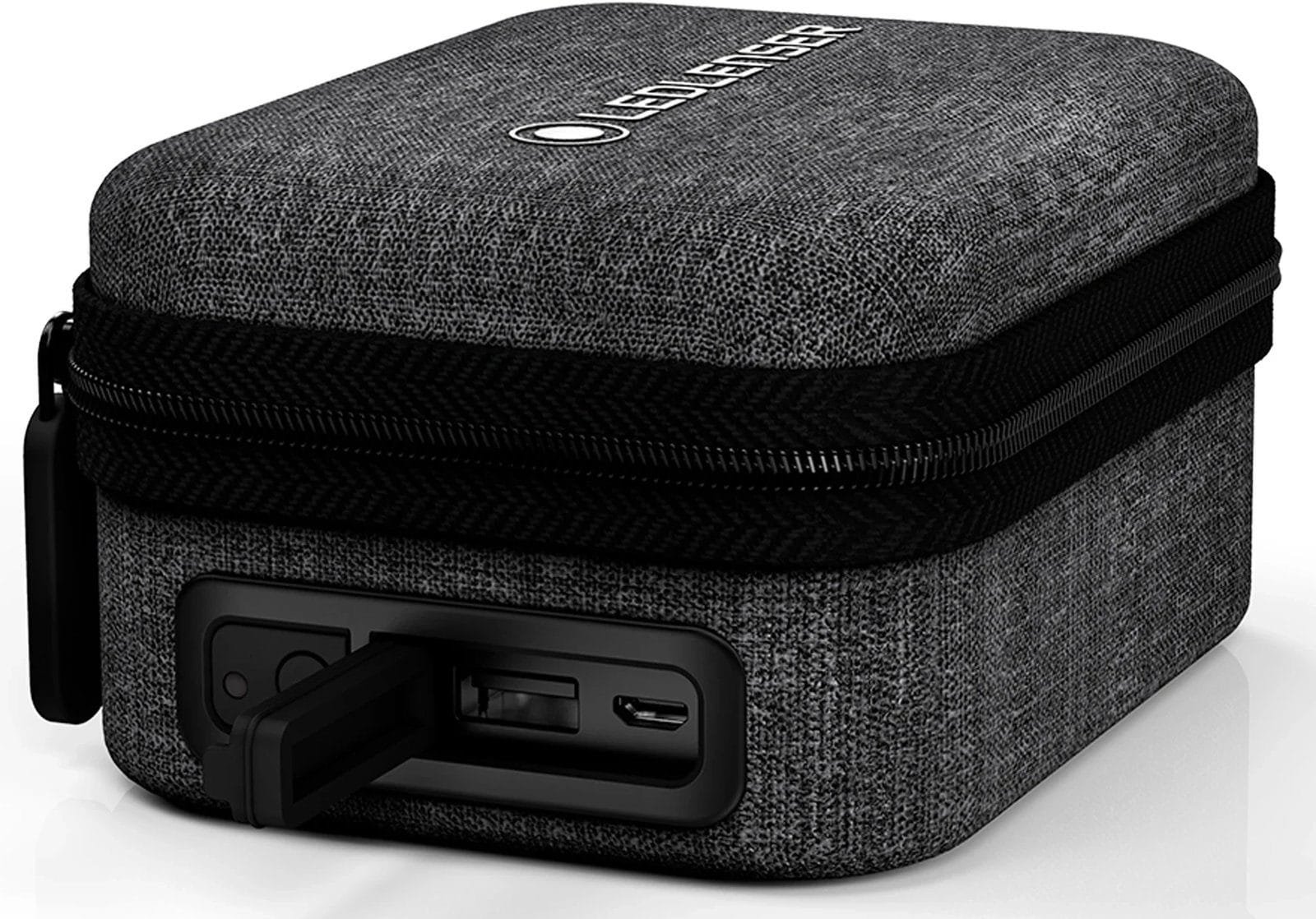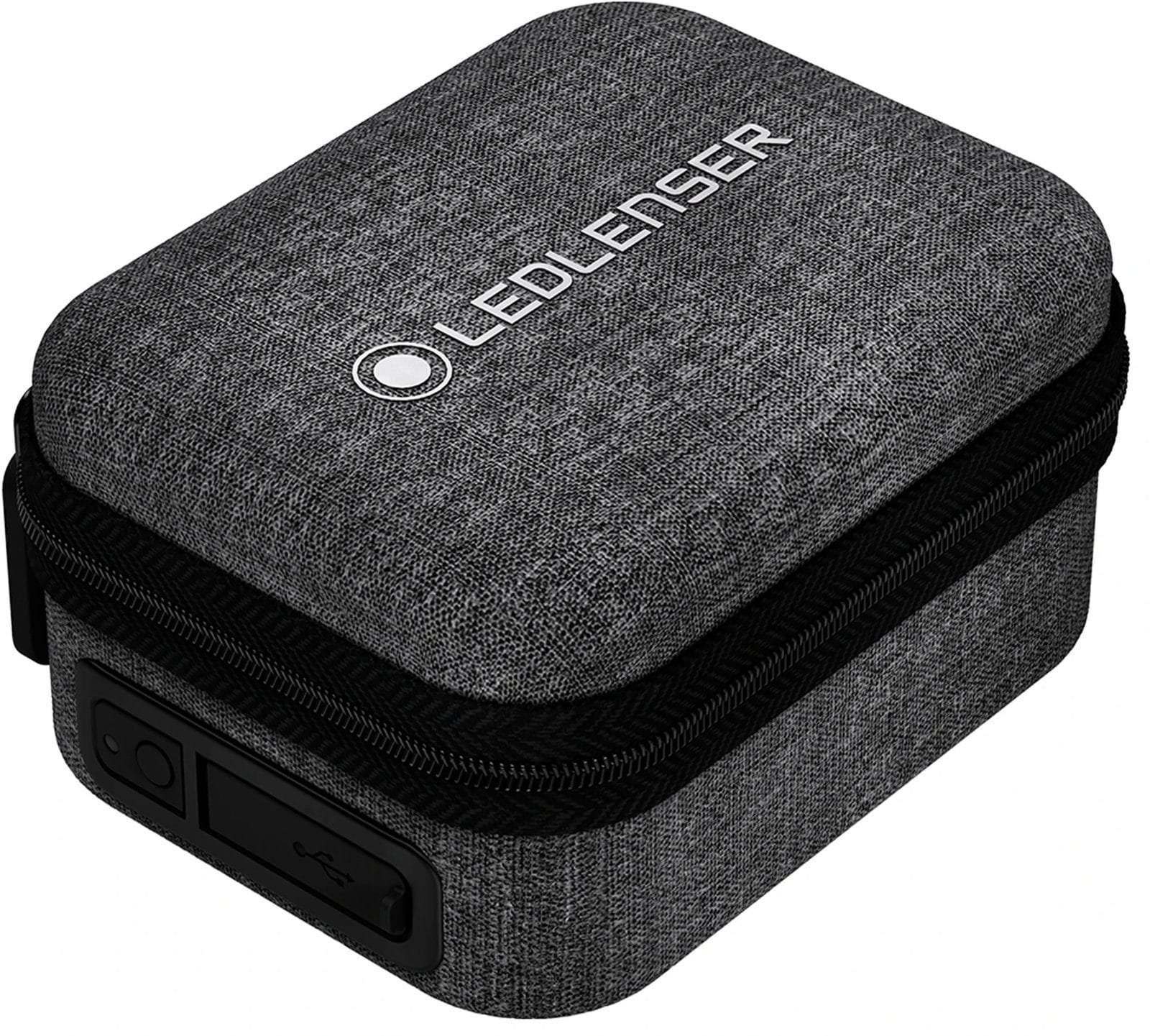 Introducing a first of its kind: the Ledlenser Power case. The Power case is a travel case for your headlamp that not only protects it but recharges it too, thanks to its intuitive internal magnetic charging port. With its built-in 5,000 mAh power bank, this innovative case can provide multiple charges for your headlamp or charge another electronic device. Weighing just 7.7 ounces, the Power case provides safe and secure transportation and recharging of compatible Ledlenser MH and its Headlamps (MH4, MH5, MH7, MH8, iH5R, iH9R). It includes an attached carabiner, so you can clip it to gear for easy access, and a battery status indicator, so you know when to charge it back up again.