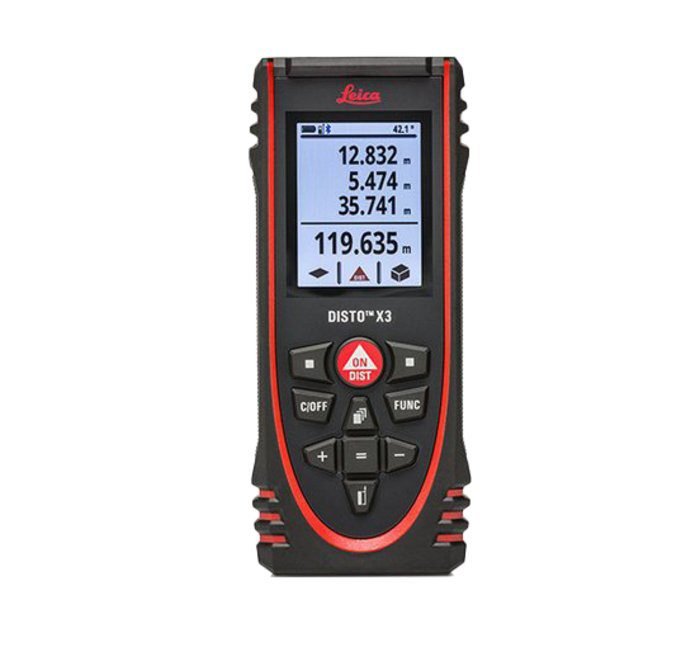 The X3 is a tough DISTO, but it’s also smart. It includes our Smart Horizontal feature with an onboard tilt sensor so you can measure over and around obstacles. It also has Bluetooth® so you can transfer your measurements to your computer or tablet—and you can use it with the DISTO Plan App for iOS and Android.