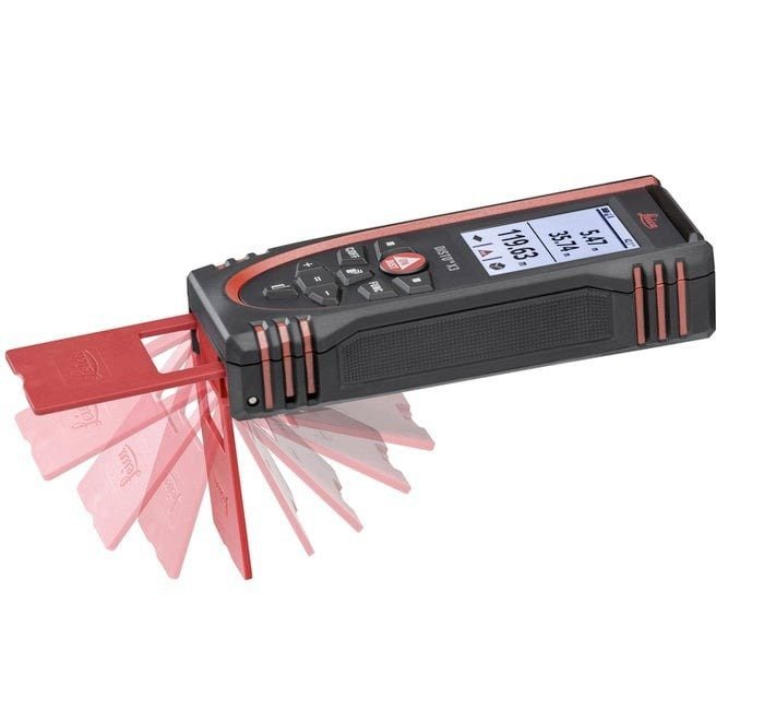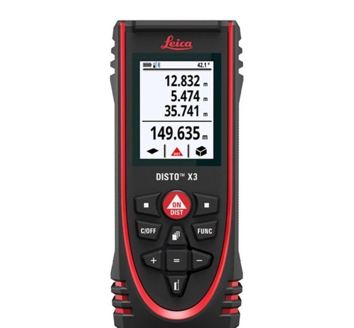 The DISTO X3 has the same rugged design as the X310 (e7400x)—IP65, drop tested at 2 meters—and it has a rotatable display which makes taking awkward measurements easier and more ergonomic. It also has a greater range at 150m (490’), so it can go the distance.