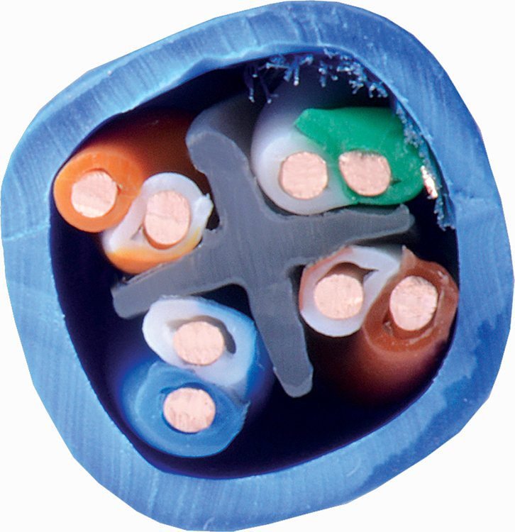 4 pair 23 AWG solid, twisted, and unshielded cable NEC type CMR and CEC type CMR FT4. Third party verified to ANSI/TIA-568C Category 6 performance. Product manufactured compliant to the requirements of UL444 for installations and applications in accordance with NEC articles 725 and 800.