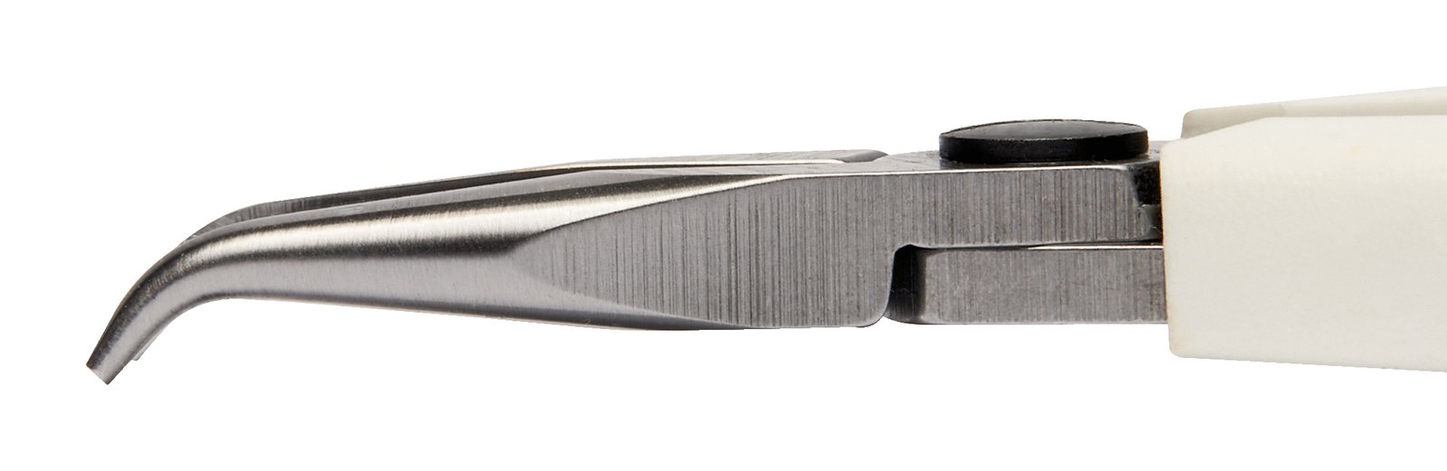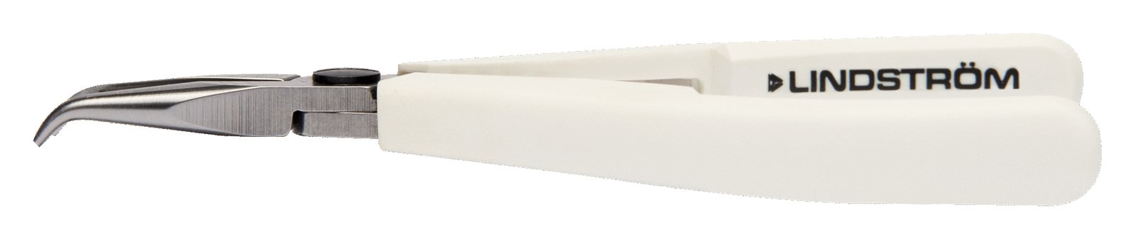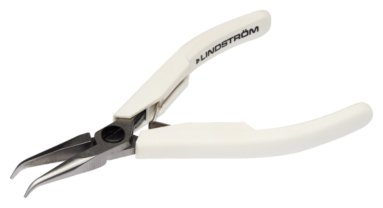 The Lindstrom 7892 is a 60-degree bent tip snipe nose plier with an ESD safe synthetic handle. It is made of high-performance alloy steel in a natural finish, polished and induction hardened to 58-60 HRC. It has a precision screw joint that minimizes friction and maximizes jaw alignment.
