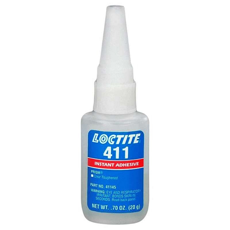 The Loctite 411 is a water white to slight cloudy, high-viscosity, ethyl cyanoacrylate adhesive gel. This general purpose, gap-filling instant adhesive is suitable for bonding rubbers, plastics, and metals. It exhibits excellent peel strength and added-heat resistance. Fixture time occurs in seconds, with full cure achieved in 24 hours at normal room humidity.