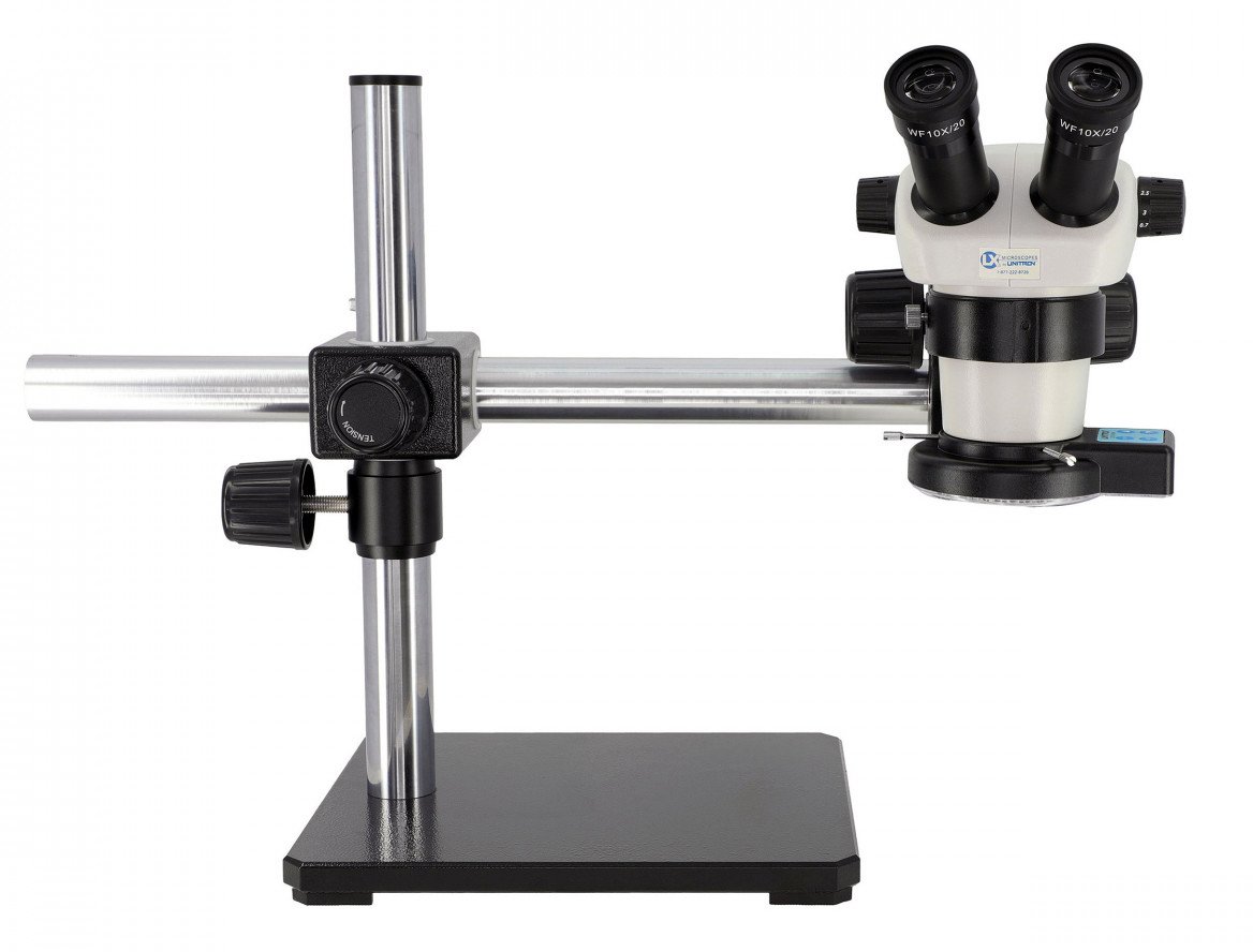 LX Microscopes by Unitron 230-LEDQRL – Binocular Stereo Microscope with Single Arm Boom Stand and Quadrant LED (Catalog # 20716)
