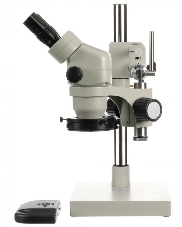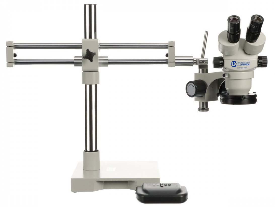 LX Microscopes by Unitron 273RB-DMLED-HO – Binocular Stereo Microscope with Dual Boom Roller Bearing Stand and High Output Dimmable Ring Light (Catalog # 23728RB)