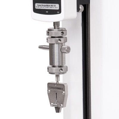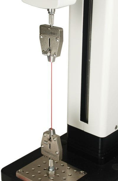 This compact self-tightening grip with a capacity of 100 lbF (500 N) is ideal for a range of low force tensile testing of small samples. The serrated steel jaws are easily opened with an ergonomic spring-loaded lever.