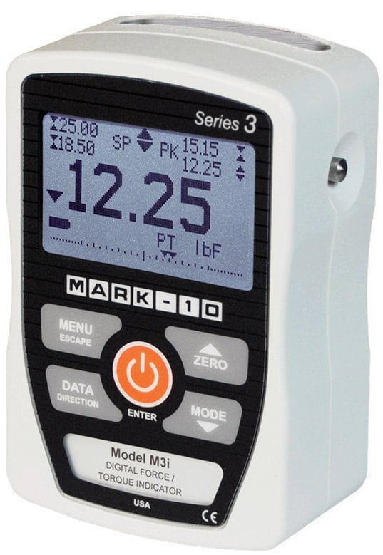 The 3i digital force / torque indicator is designed to work with a wide range of Mark-10 remote force and torque sensors. With exclusive Plug & Test technology, all calibration and configuration data is saved within the sensor’s smart connector, not the indicator, allowing for true interchangeability. In addition, all sensors are fully compatible with the advanced 5i force / torque indicator.