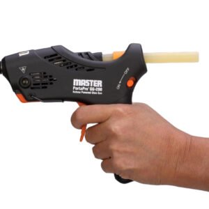 The Master PortaPro® Glue Gun Model GG-200 is a lightweight, cordless, butane powered glue gun. It features a unique temperature control thermostat which automatically controls the glue gun chamber temperature by regulating the gas flow for optimal efficiency in butane consumption. As a result, this compact, lightweight glue gun has a greatly increased run time with a much lower butane consumption rate. Continuous run time up to 2 hours.