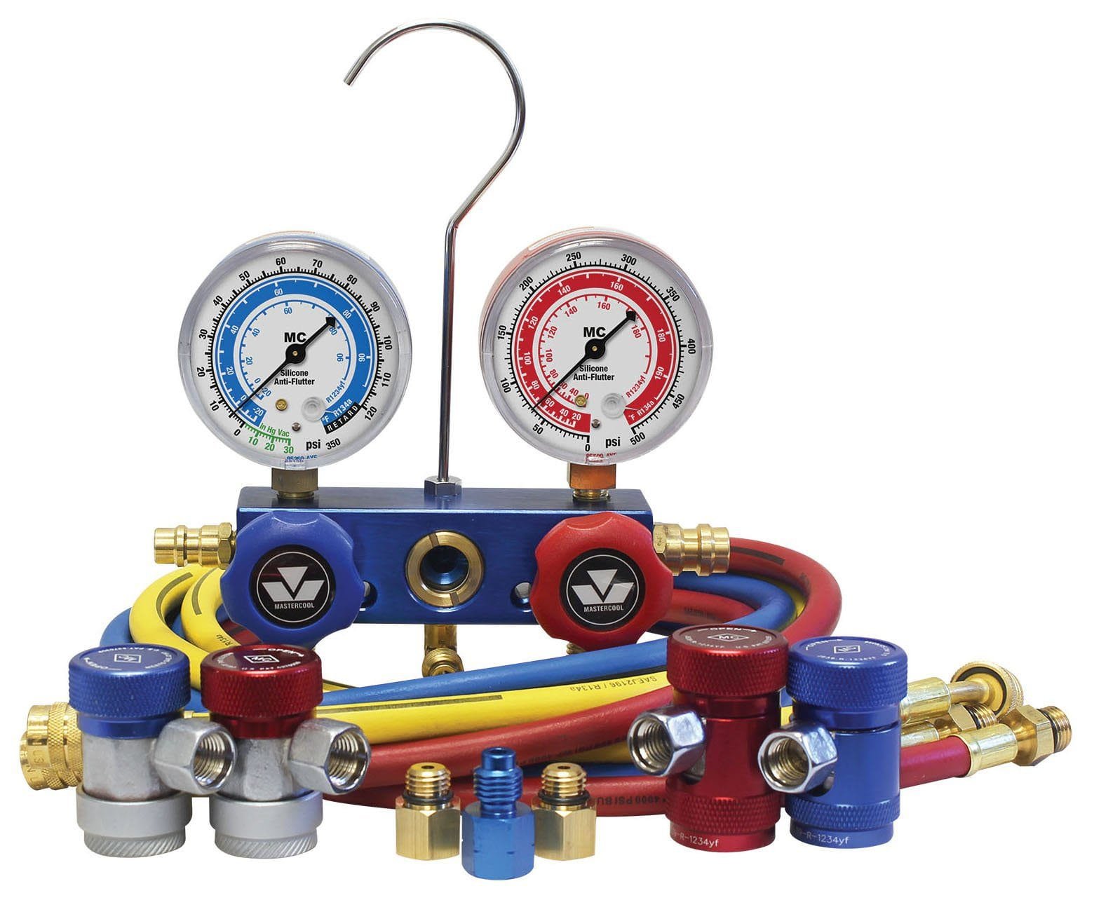 - Aluminum manifold with 60-inch hoses