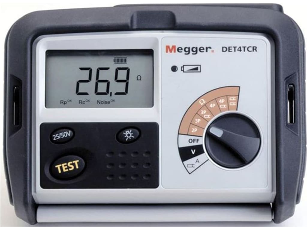 These ground testers from Megger offer a comprehensive solution to ground resistance and soil resistivity testing needs. The instruments provide such functions as 2 poles, 3 poles, 4 poles, Attached Rod Technique (ART), stakeless, leakage current, and ground noise voltage measurements. Now includes selectable output voltage (25 V or 50V). The DET4TC2 and DET4TCR2 offer four selectable test frequencies (94, 105, 111, and 128 Hz) for improved testing in noisy environments.