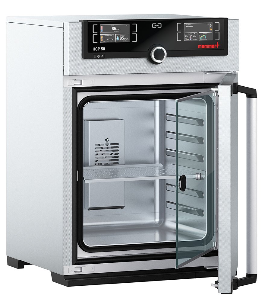 HUMIDITY CHAMBER HCP with active humidity control from 20 % to 95 % RH and unsurpassed real temperature humidity homogeneity over the entire interior, this nearly condensation-free climate chamber offers the full range of comfort, reliability, and safety. It is ideally suited for environmental tests, accelerated life tests, stress tests of drug substances according to ICH Q1A, and 85/85 tests to IEC 60068-2-67 and IEC 60068-2-78. It is also used in building physics and biological research.