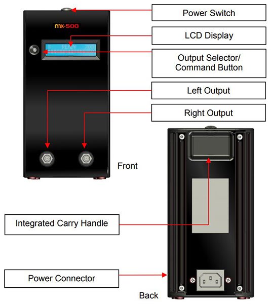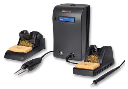 The MX-500 Series is a precision, high-power soldering system with dual switchable ports. The system utilizes SmartHeat Technology, wherein each cartridge is equipped with a self-regulating heater which ‘senses’ its own temperature and closely maintains its pre-set idle temperature for the life of the heater-tip. The tip temperature is determined by the inherent metallurgical properties of the heater; no external adjustment or equipment is required. The MX-500 retains switchable dual port, 40W operation while introducing numerous new features in a new housing.
